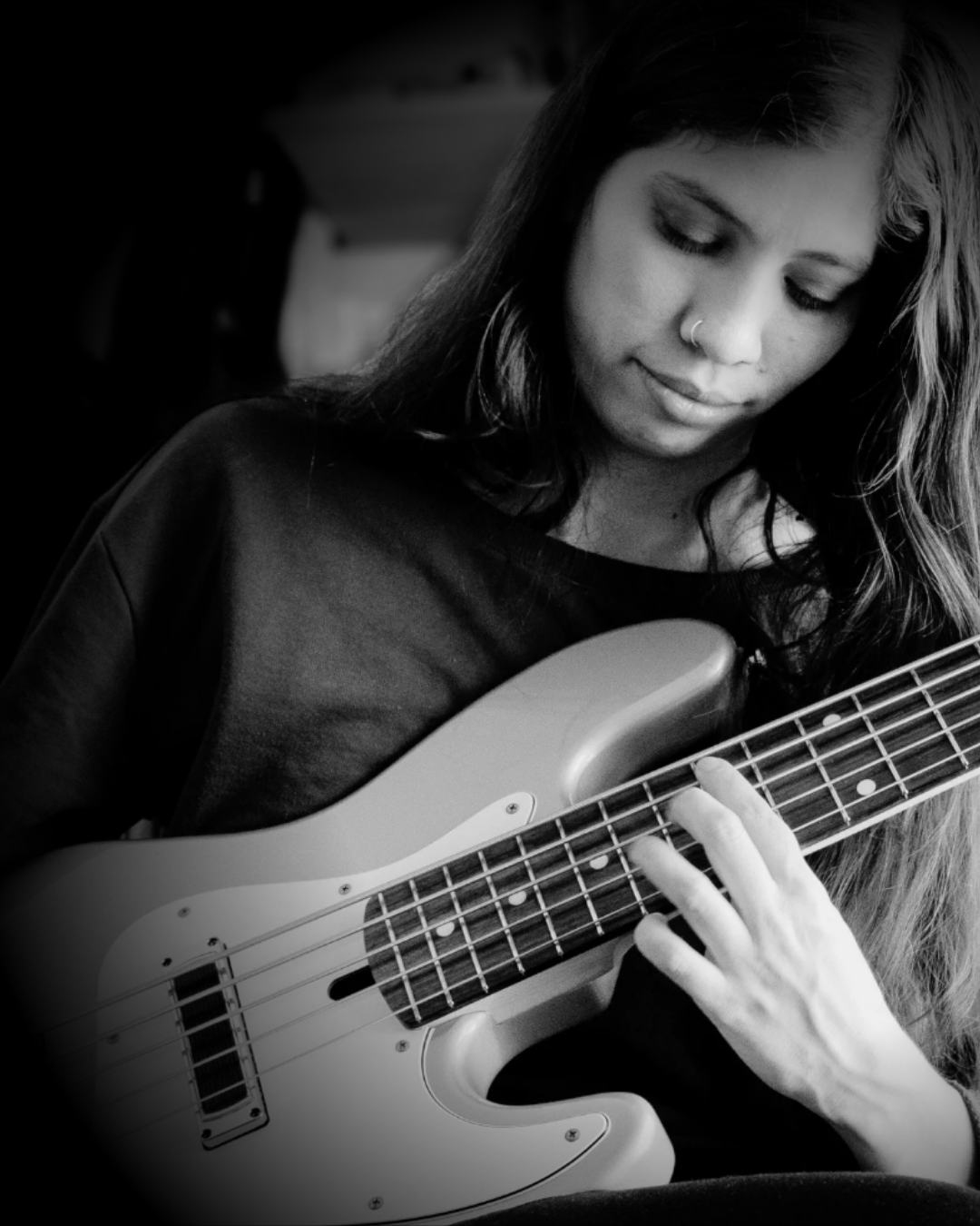 As a bass player with years of experience collaborating in jazz, rock, and metal contexts, she has cultivated a deep interest in exploring the variety of ways these styles can develop and interact with others. As a result of these explorations, intriguing and inspiring elements that can be incorporated into new original and immersive compositions.